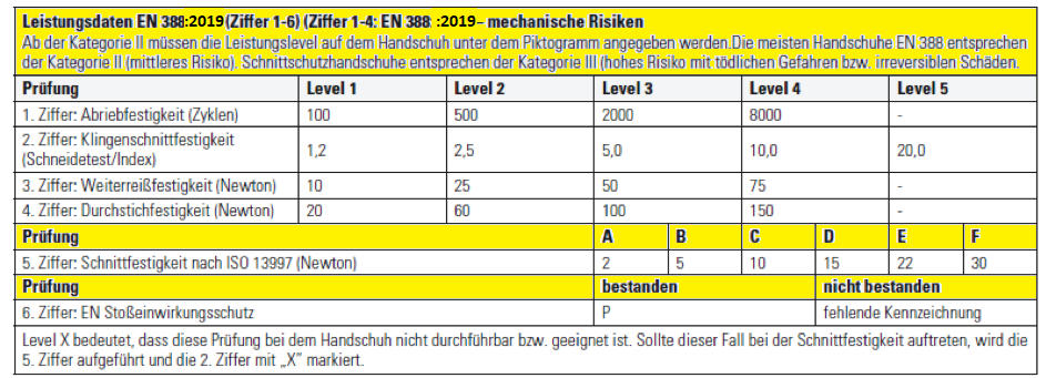 Die EN 388:2019 erklärt die Testverfahren, mit denen alle Schutzhandschuhe der PSA Kategorie