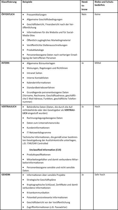 Beispiele für die Klassifizierung von Informationen