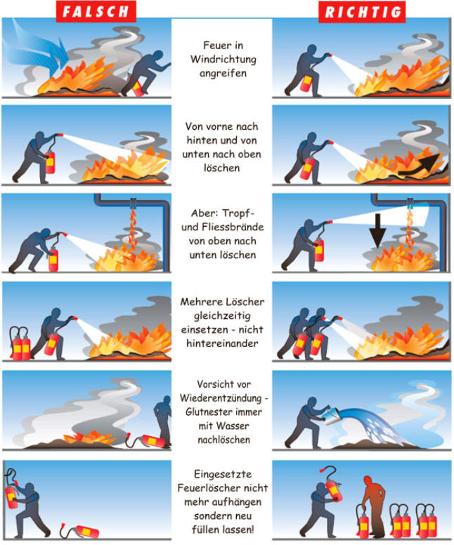 Wie setze ich einen Handfeuerlöscher