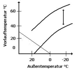 angehoben wird die Heizkennlinie entlang einer schrägen