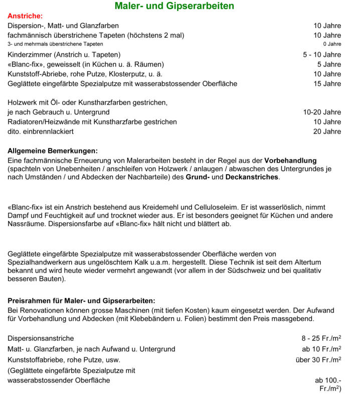 Nutzungsdauer Malerarbeiten