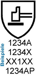 Durch das Hammer-Piktogramm und 4 Zahlen + 1 Buchstaben unterhalb oder nah bei bei dem