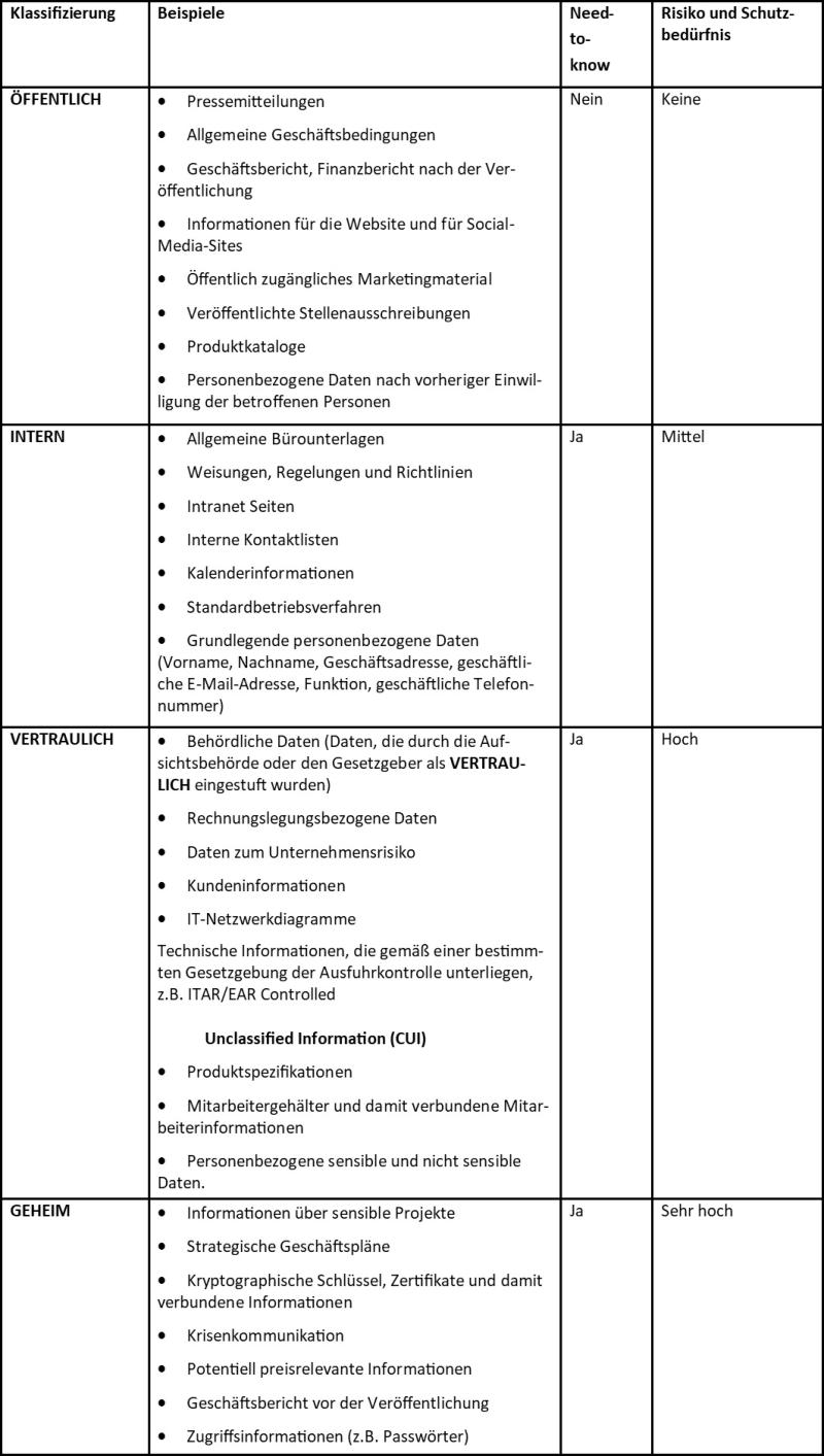 Beispiele für die Klassifizierung von Informationen