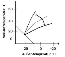 angehoben wird die Heizkennlinie entlang einer schrägen