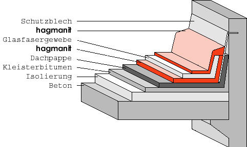 dem Wandblech erhalten eine hagmanit-Vollarmierung, die Dachpappe und Wandblech verbindet