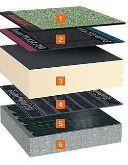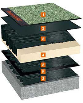 Beispiel für eine hochwertige zweilagigeBitumen-Abdichtung mit PIR-Dämmstoff.