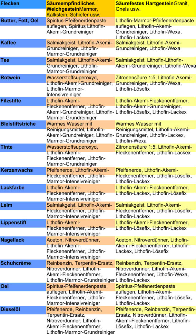 geeignetes Lösungsmittel anlegen (Steinart beachten), abtupfen