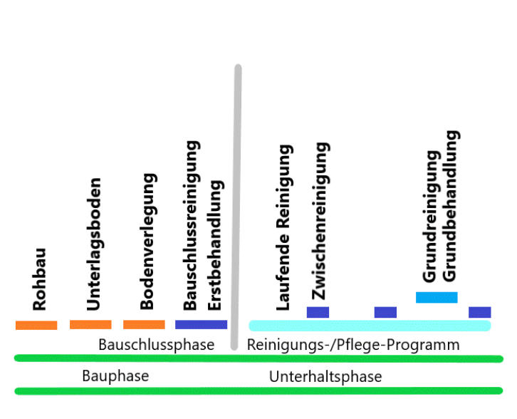 Bauschlussreinigung folgt. Bei dieser erstmals durchgeführten Grundbehandlung werden die