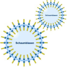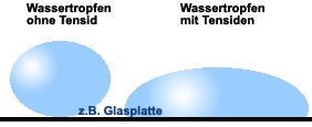 Die Tenside sind „oberflächenaktiv“, d.h. sie wollen eine möglichst grosse Oberfläche. Dies bewirkt, dass Schmutzpartikel von den Tensiden umlagert werden und in den Wassertropfen einwandern - dies wirkt schon aktiv reinigend. Das Wasser transportiert den Schmutz in den Eimer.Die oberflächenaktive Wirkung der Tenside wirkt dem kohäsiven (Oberflächenspannung und Zusammenhangskraft) Bestreben des Wassers entgegen. Die Benetzfähigkeit des Wassers wird dadurch deutlich verbessert.Dies führt zu dem bekannten Schaumeffekt, den die Tenside aufgrund Ihrer Oberflächenaktivität hervorrufen.